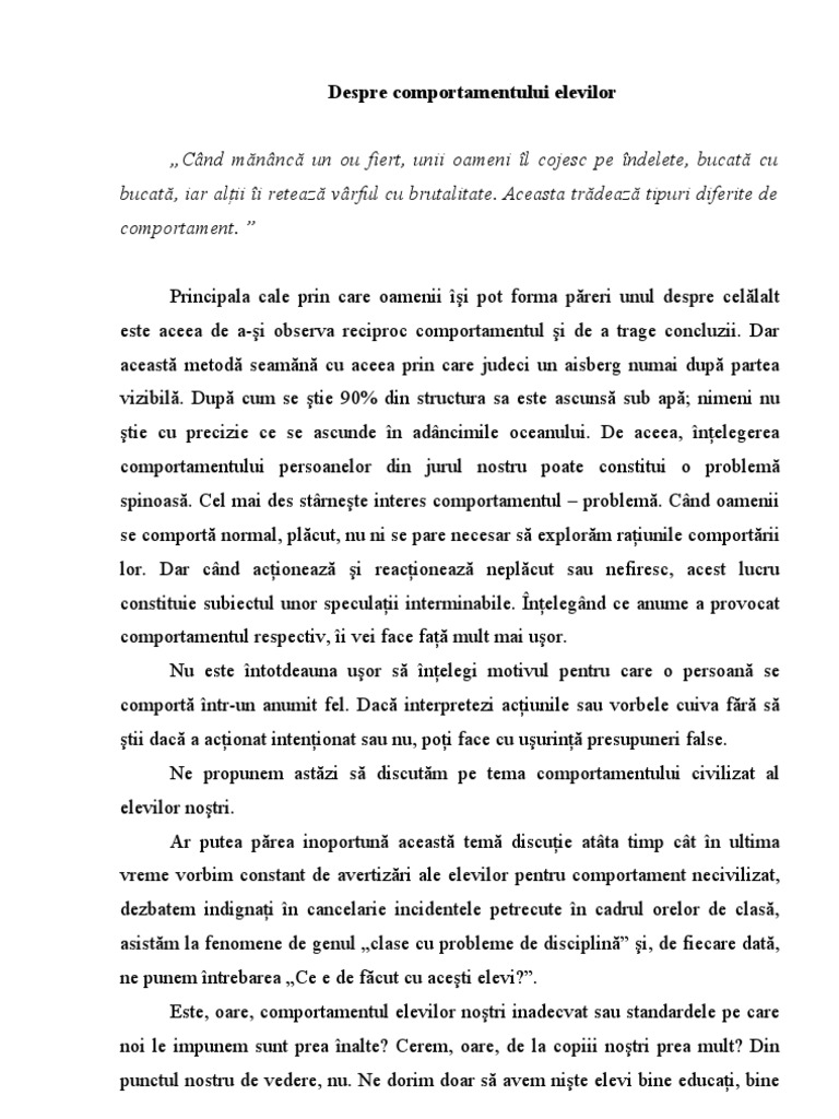 untuk "Comportamente Neadecvate Ale Elevilor"