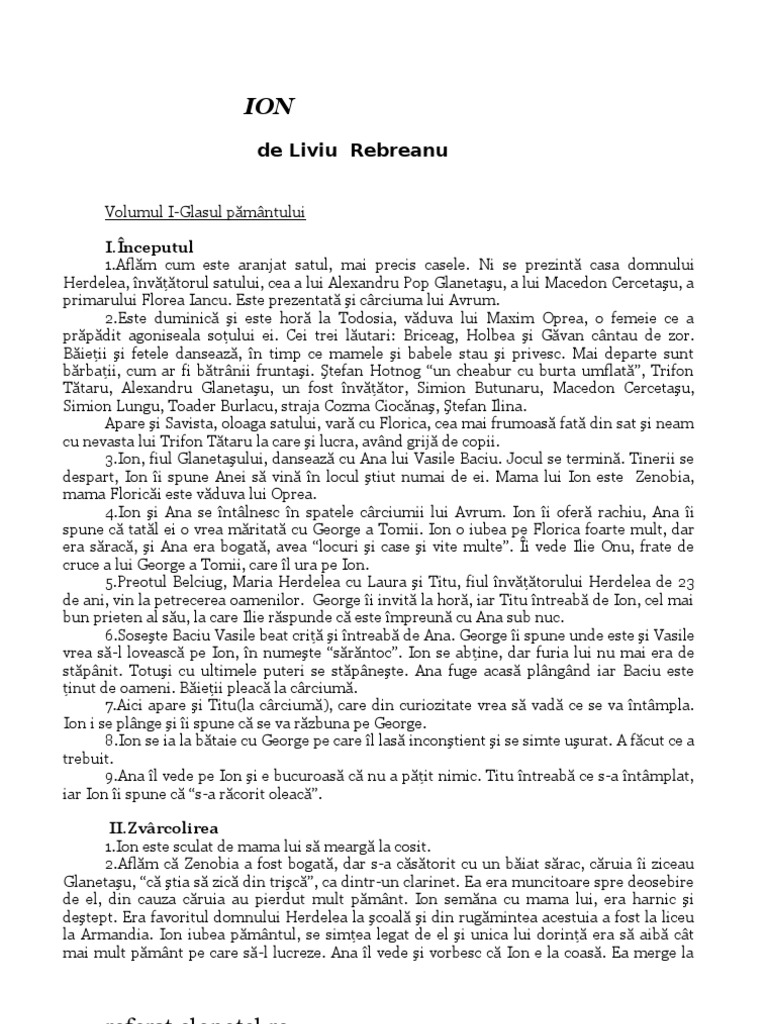 Homework ion de liviu rebreanu: Romanul „ion de liviu rebreanu reprezintă o certitudine a valorilor realismului după literatura sămănătoristă şi poporanistă. In realizarea romanului „ion, publicat in 1920, rebreanu a pornit de la o serie de intamplari reale.